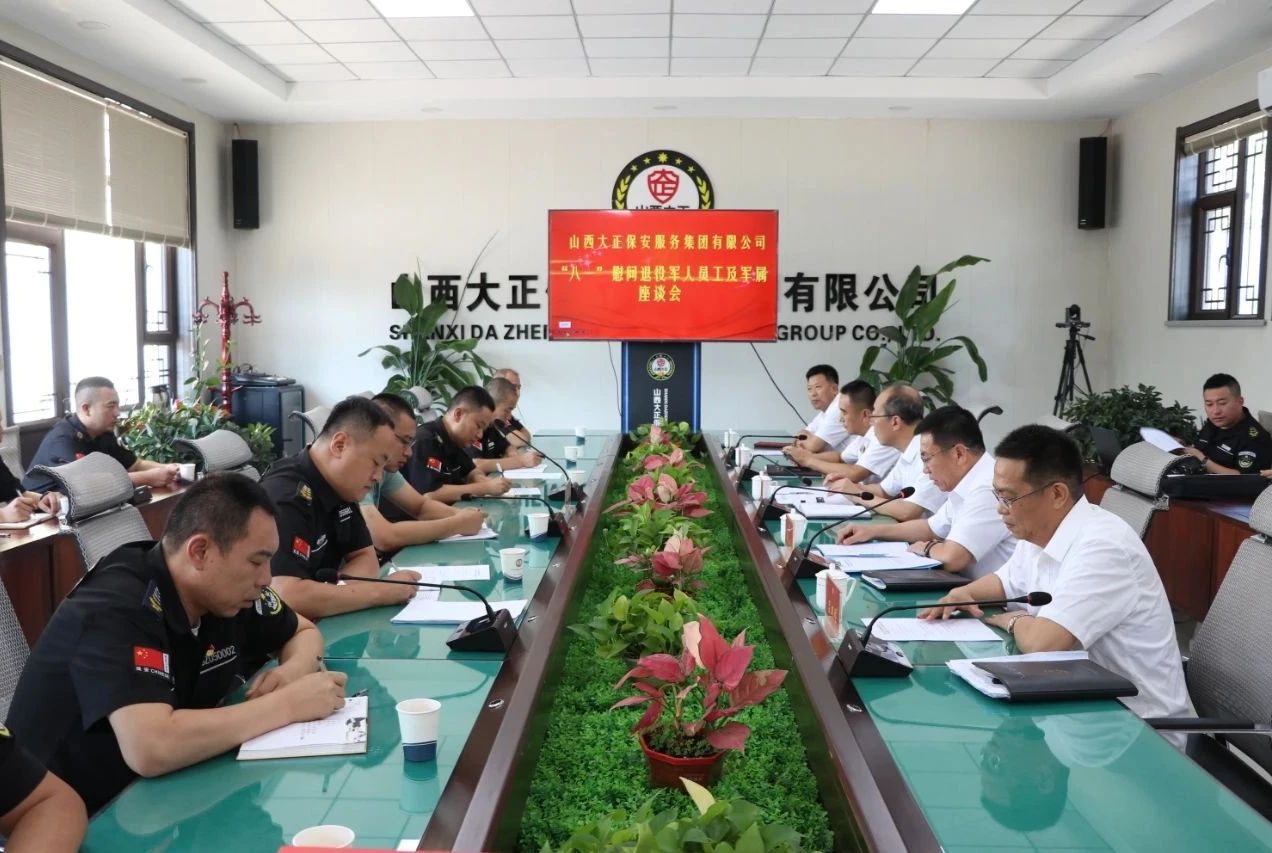 2024年8月1日,在第97個(gè)“八一”建軍節(jié),為深入貫徹落實(shí)習(xí)近平總書記對(duì)退役軍人工作作出的重要指示精神,增強(qiáng)退役軍人榮譽(yù)感,牢記報(bào)國(guó)初心,永葆軍人本色。山西大正保安服務(wù)集團(tuán)有限公司在公司中會(huì)議室隆重舉行了“八一”慰問退役軍人員工及軍屬座談會(huì)。集團(tuán)公司領(lǐng)導(dǎo)及機(jī)關(guān)退役軍人員工、各子(分)公司、城區(qū)中隊(duì)退役軍人員工代表、軍屬代表30余人參會(huì)。此次活動(dòng)旨在向?yàn)楣景l(fā)展做出重要貢獻(xiàn)的退役軍人員工及默默支持他們的軍屬表達(dá)崇高敬意和深切關(guān)懷,進(jìn)一步弘揚(yáng)擁軍優(yōu)屬、擁政愛民的優(yōu)良傳統(tǒng)。