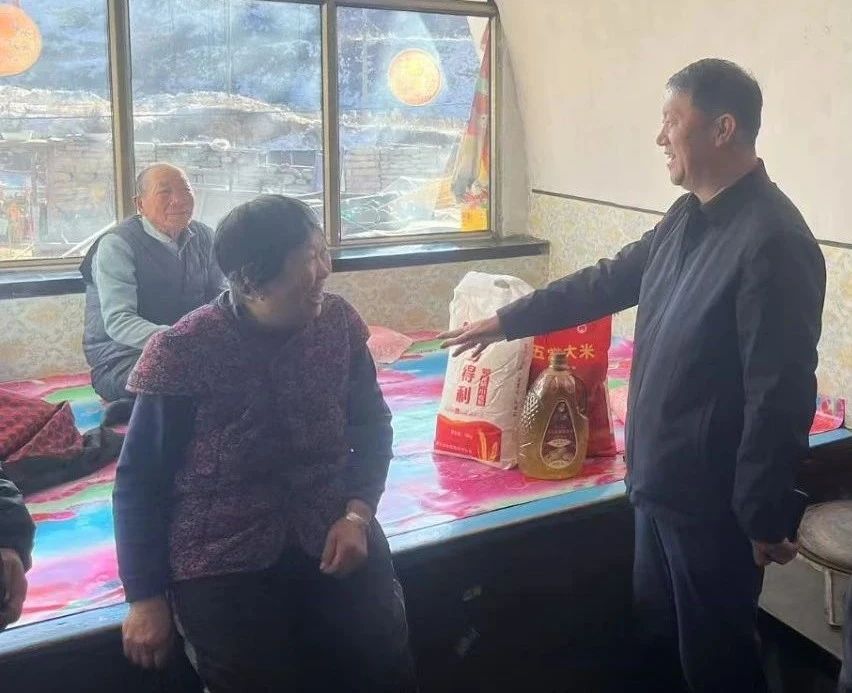 趙培宏一行專程到村民家中走訪,詳細(xì)詢問了健康狀況、家庭情況、收入來源及生活中遇到的實(shí)際困難,并送上米、面、油等生活物資和新年祝福,讓他們?cè)诤涞亩旄惺艿搅藵鉂馀。再三叮囑他們照顧好身體,做好保暖,注意用火用電安全,并要求駐村干部隨時(shí)掌握群眾困難和訴求,充分利用各項(xiàng)幫扶政策幫助群眾解決實(shí)際困難。