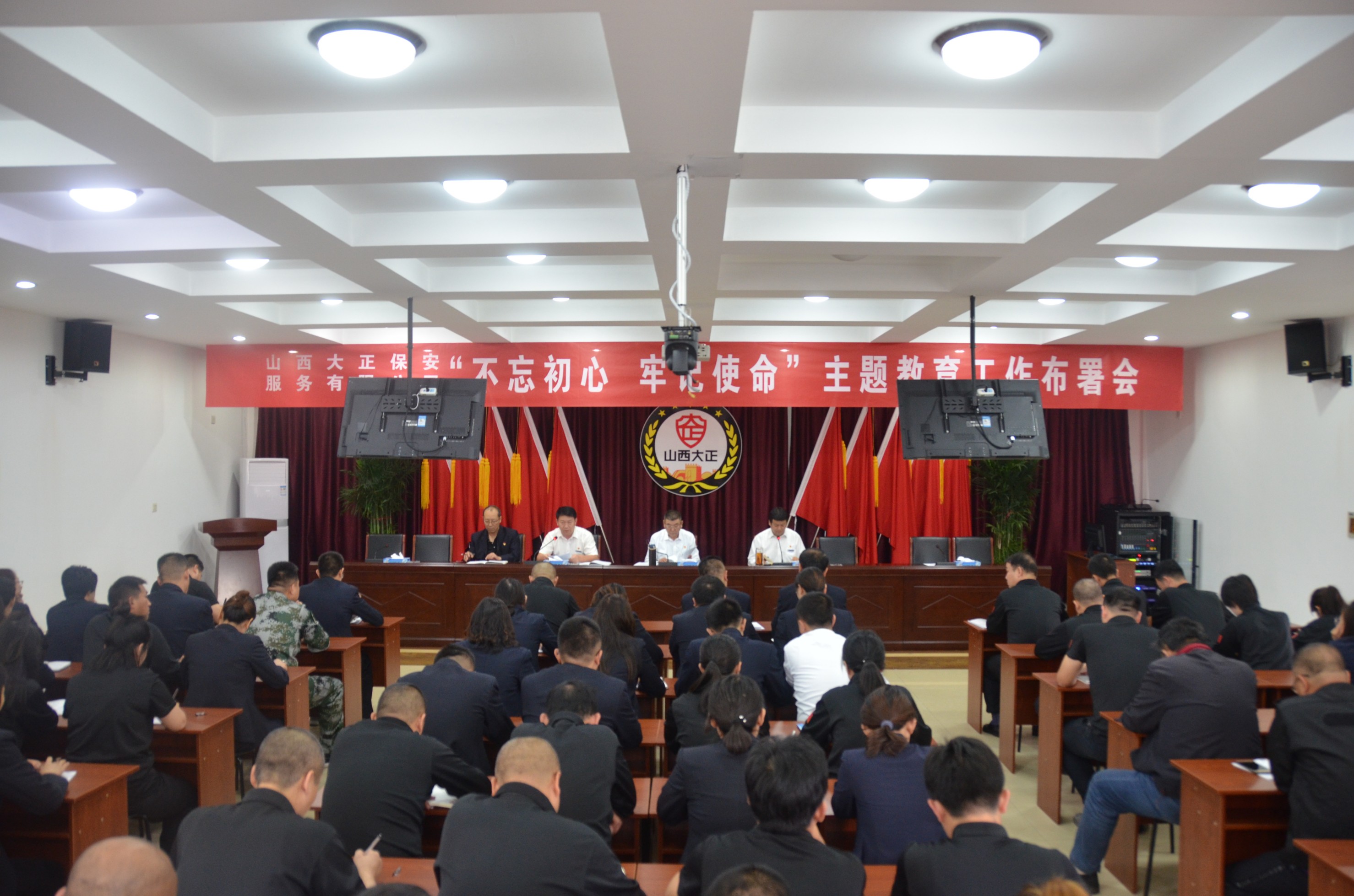9月20日,山西大正保安服務(wù)有限公司召開“不忘初心、牢記使命”主題教育動員部署會議。黨委書記、董事長張躍生作動員部署,黨委副書記、副總經(jīng)理陳志平主持會議,公司領(lǐng)導(dǎo)、中層以上管理人員及機關(guān)全體員工參加會議。