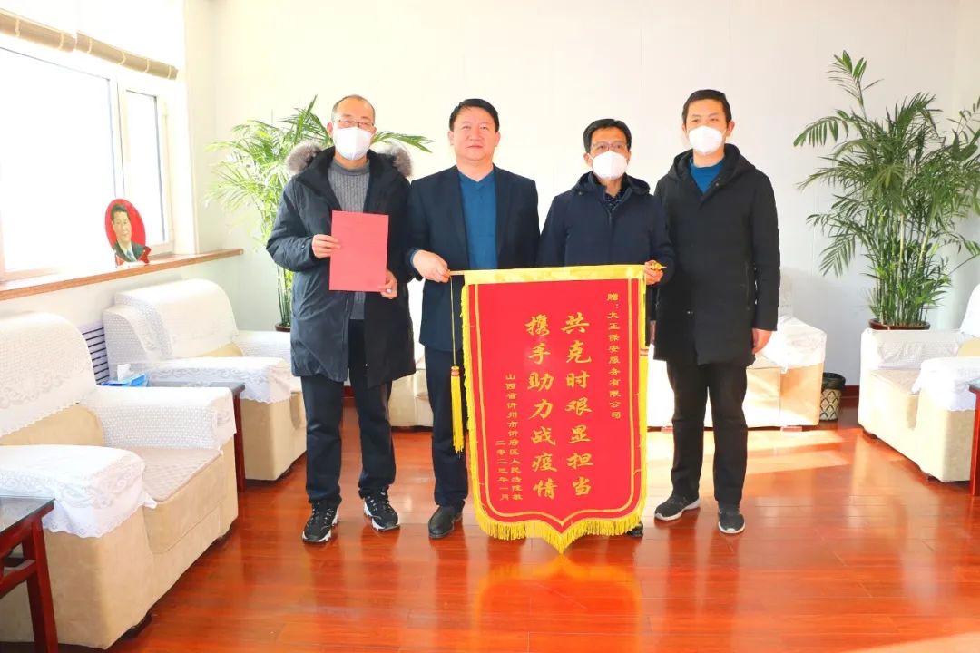 1月9日上午,忻府區(qū)法院黨組成員、副院長(zhǎng)黃偉,黨組成員、政治部主任焦旭林帶著寫(xiě)有“共克時(shí)艱顯擔(dān)當(dāng) 攜手助力戰(zhàn)疫情”的錦旗和一封感謝信來(lái)到了山西大正保安服務(wù)集團(tuán)有限公司,表達(dá)對(duì)保安公司在疫情防控中無(wú)私無(wú)畏、甘愿付出的誠(chéng)摯謝意。大正保安集團(tuán)公司黨委副書(shū)記、總經(jīng)理趙培宏、黨委委員、副總經(jīng)理王明生接洽。自2022年11月6日忻府區(qū)突發(fā)疫情以來(lái),山西大正保安服務(wù)集團(tuán)有限公司駐忻府區(qū)法院勤務(wù)點(diǎn)的隊(duì)員們?cè)陉悤詵|隊(duì)長(zhǎng)的帶領(lǐng)下,積極響應(yīng)疫情防控各項(xiàng)要求,除在保障法院關(guān)鍵時(shí)期平穩(wěn)運(yùn)行外,保安公司職員還能夠挺身而出,積極投身防疫點(diǎn)值守、后勤保障、車輛運(yùn)行、機(jī)關(guān)防疫消殺等方面,以實(shí)際行動(dòng)為忻府區(qū)法院疫情防控及機(jī)關(guān)安保工作做出了突出貢獻(xiàn)。越是緊要關(guān)頭,越能映照初心;越在關(guān)鍵時(shí)刻,越顯擔(dān)當(dāng)使命。面對(duì)突如其來(lái)的疫情“大考”,大正保安集團(tuán)積極響應(yīng)號(hào)召,主動(dòng)、迅速地配合我院防疫部署,精心服務(wù)群眾、嚴(yán)格執(zhí)行命令、防范意識(shí)到位,助力織密織牢疫情防控網(wǎng),充分展示了大正保安人的職業(yè)素養(yǎng)與責(zé)任擔(dān)當(dāng)。幾年來(lái),山西大正保安服務(wù)集團(tuán)有限公司駐區(qū)法院全體職員,以法院為家,服從工作需要,積極參與各項(xiàng)審判事業(yè),做到聞令而動(dòng),成為不可或缺的中堅(jiān)力量,為法院跨越式發(fā)展提供了巨大支持。