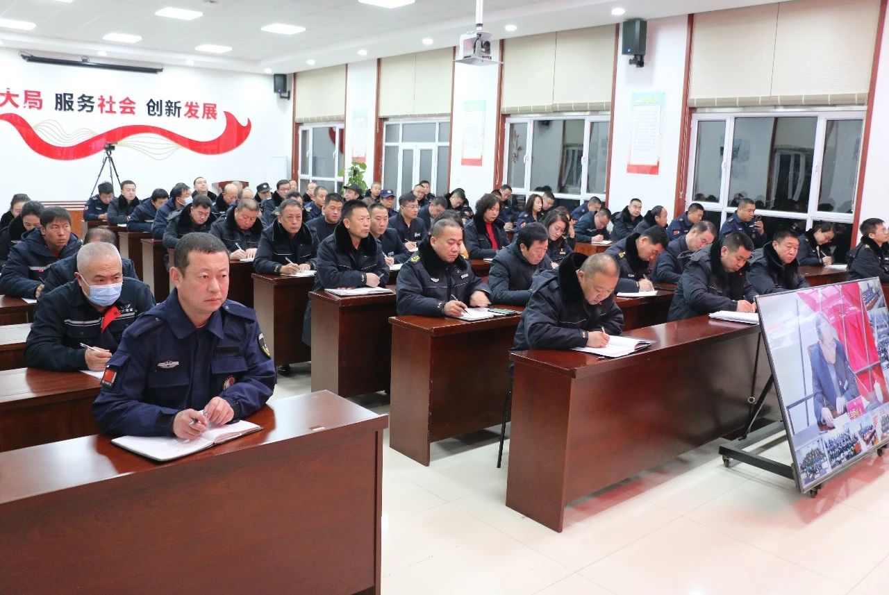 1月28日20時,為確保全員參加安全防范工作會議,集團公司利用晚間完成守押任務的時間,召開安全防范工作視頻會議,主會場設在集團公司大會議室,分布在各縣市的21個基層中隊在各自分會場參加會議。