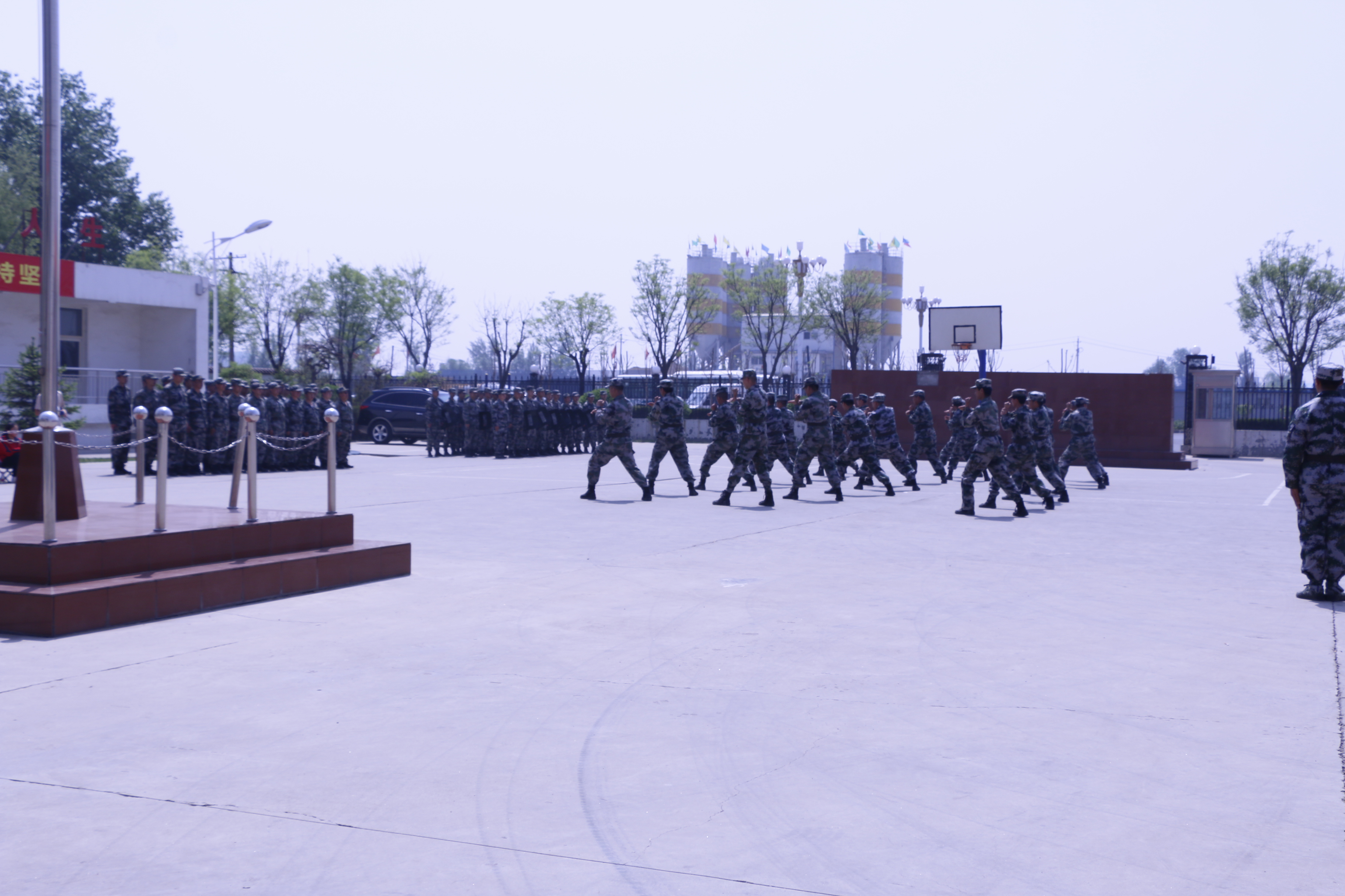 宣誓儀式結(jié)束后,全體與會(huì)領(lǐng)導(dǎo)和應(yīng)急連隊(duì)員赴盧野和大正保安服務(wù)有限公司參觀了民兵應(yīng)急連基礎(chǔ)設(shè)施建設(shè)和應(yīng)急物資裝備庫(kù)。10時(shí)許,全體人員回到忻府區(qū)人武部參加“忻府區(qū)2018年度民兵整組驗(yàn)收觀摩會(huì)議”,與會(huì)領(lǐng)導(dǎo)首先觀看了民兵應(yīng)急搶險(xiǎn)救災(zāi)裝備和通信裝備展示,而后觀摩了防爆隊(duì)形、軍體操、盾棍術(shù)等科目的會(huì)操演練。甴大正保安服務(wù)有限公司組成的民兵應(yīng)急連隊(duì)員們整齊肅穆、英姿颯爽,全身心投入到演練當(dāng)中,以高標(biāo)準(zhǔn)的要求順利完成了上級(jí)領(lǐng)導(dǎo)檢驗(yàn)任務(wù),受到了與會(huì)領(lǐng)導(dǎo)充分肯定與陣陣掌聲。最后,忻府區(qū)區(qū)委書(shū)記張鈺祥、軍分區(qū)副司令員李領(lǐng)國(guó),分別作了重要講話(huà),會(huì)議甴忻府區(qū)人武部政委劉啟國(guó)主持,會(huì)議在熱烈的氣氛中圓滿(mǎn)結(jié)束。