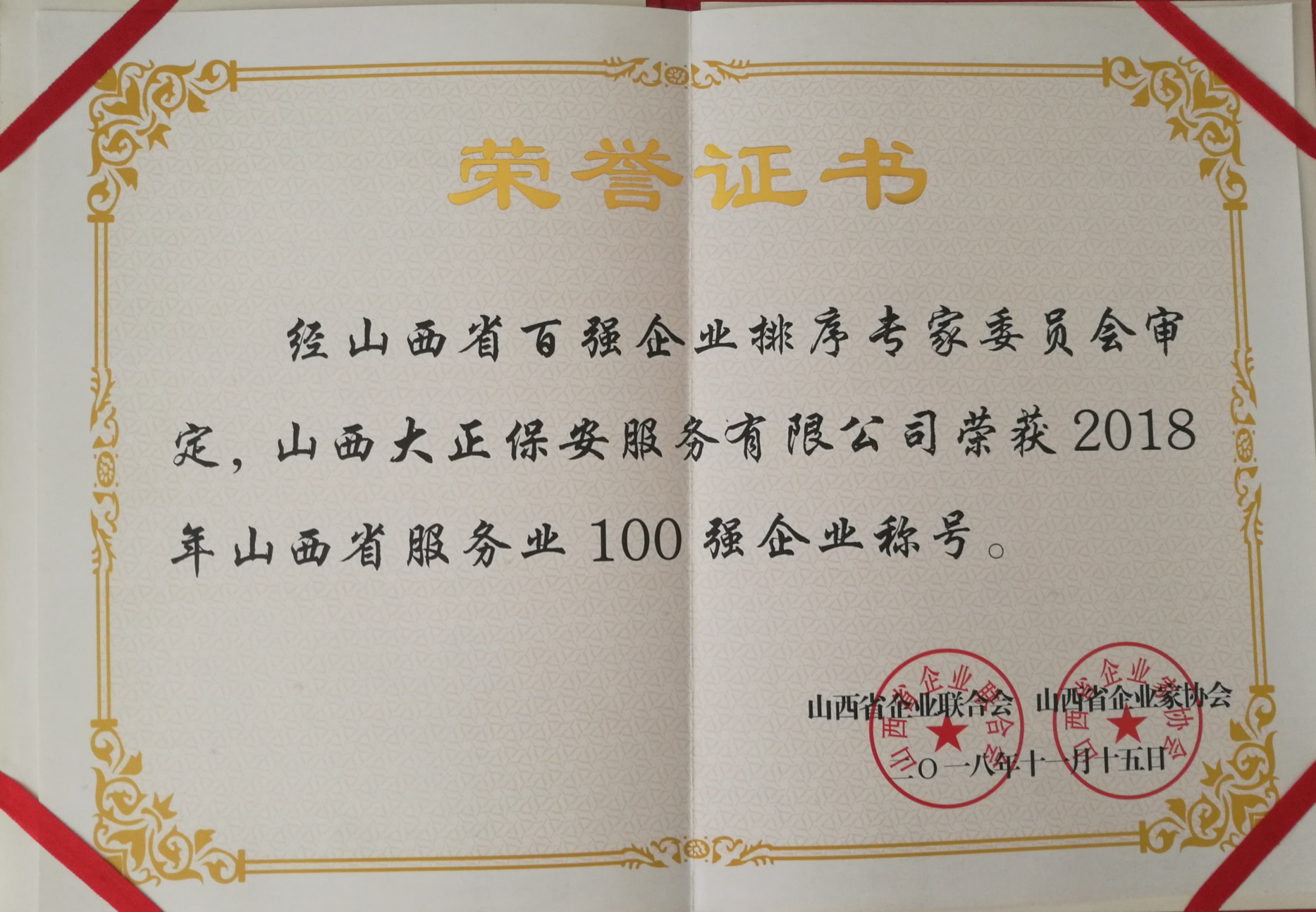 2018山西企業(yè)100強發(fā)布,公司榮獲“山西省服務(wù)業(yè)100強企業(yè)”稱號