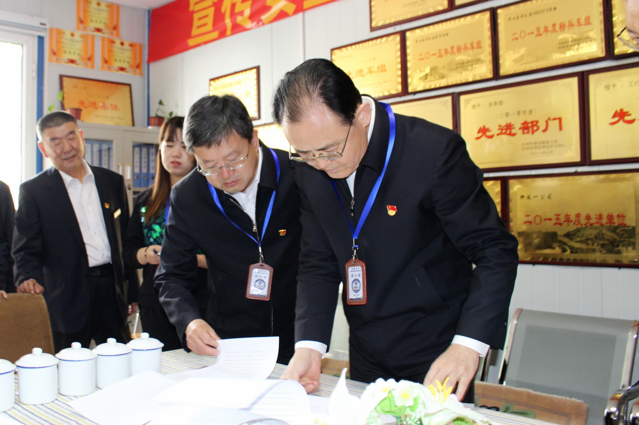山西省人大常委會(huì)副主任、忻州市委書(shū)記李俊明在認(rèn)真查看公司黨員學(xué)習(xí)筆記