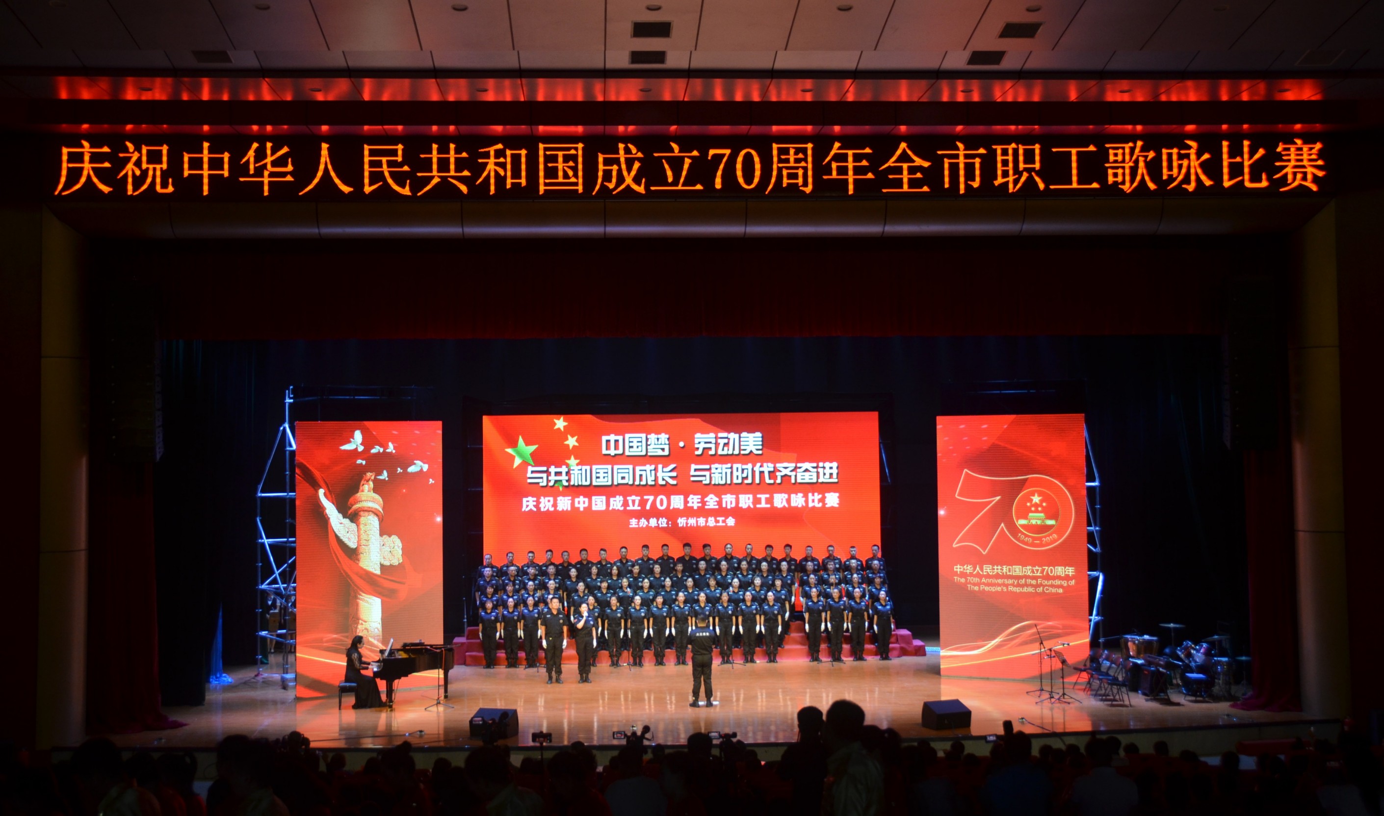 9月19日下午,由忻州市總工會舉辦的以“中國夢·勞動美”與共和國同成長 與新時代齊奮進為主題的慶祝中華人民共和國成立70周年全市職工歌詠比賽在忻州市職業(yè)技術學院正式拉開帷幕。我公司組隊參加并喜獲金獎。公司黨委書記、董事長張躍生,黨委副書記、副總經理陳志平,黨委委員、副總經理趙培宏現場觀賽為參賽隊員加油鼓勁。
