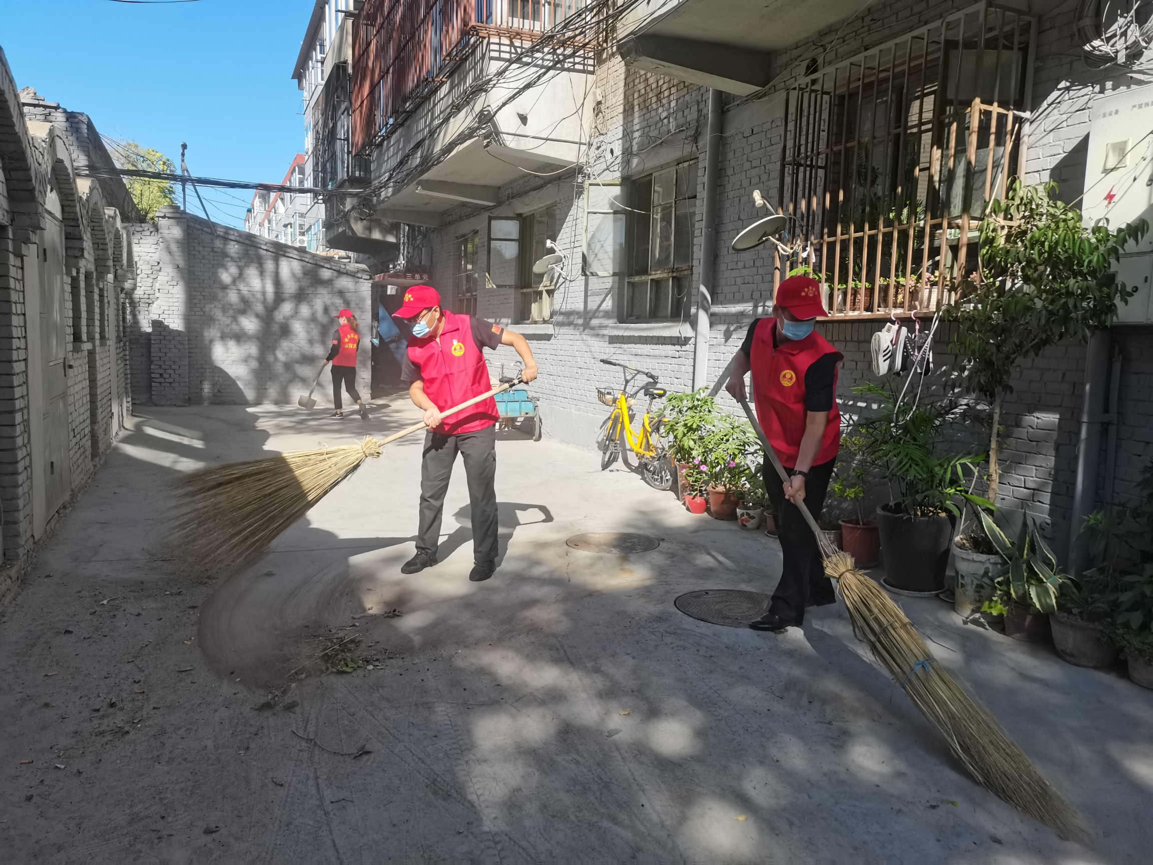 時(shí)值九月,太陽(yáng)還是炙熱的烘烤著大地,我公司志愿者頂著炎炎烈日在小區(qū)內(nèi)進(jìn)行衛(wèi)生大清掃,志愿者對(duì)小區(qū)的墻面進(jìn)行了清理,粘貼在墻面上的小廣告由于時(shí)間久,難以清理,志愿者們手持鏟子進(jìn)行細(xì)致的處理。墻面上面噴印的小廣告,志愿者們用清水進(jìn)行了清理;洗刷墻壁完畢,志愿者們攜帶掃帚,鐵鍬、垃圾袋等清掃工具對(duì)院子里面的路面、樓道、死角的白色垃圾、廢棄堆放物等進(jìn)行集中、徹底的清理清運(yùn);志愿者們手拿抹布對(duì)小區(qū)的樓門和樓梯欄桿進(jìn)行了一絲不茍的擦拭;金秋時(shí)節(jié),院子里面的落葉較多,自愿者們專門對(duì)地面上面的落葉進(jìn)行了集中清理;由于屬于老舊小區(qū),自行車、電動(dòng)車亂,沒(méi)有專門的區(qū)域進(jìn)行自行車、電動(dòng)車的停放,志愿者們?cè)谛^(qū)內(nèi)專門劃了自行車、電動(dòng)車停放區(qū),使自行車、電動(dòng)車停放有序,讓整個(gè)環(huán)境看起來(lái)更加干凈整潔。