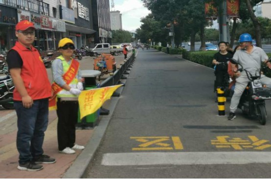 紅燈亮起,停車線邊的工作人員便舉起手中的小旗,向行人與車輛作出停止示意,并對(duì)停車位置有誤的電動(dòng)車做出指揮和引導(dǎo),對(duì)搶行、闖紅燈等不遵守交規(guī)的行人進(jìn)行制止;對(duì)年紀(jì)較大、腿腳不便的居民,志愿者主動(dòng)攙扶,護(hù)送其安全的過(guò)馬路。在志愿者的文明勸導(dǎo)下,行人闖紅燈現(xiàn)象明顯減少,車輛和行人安全有序通行,道路交通安全暢通。