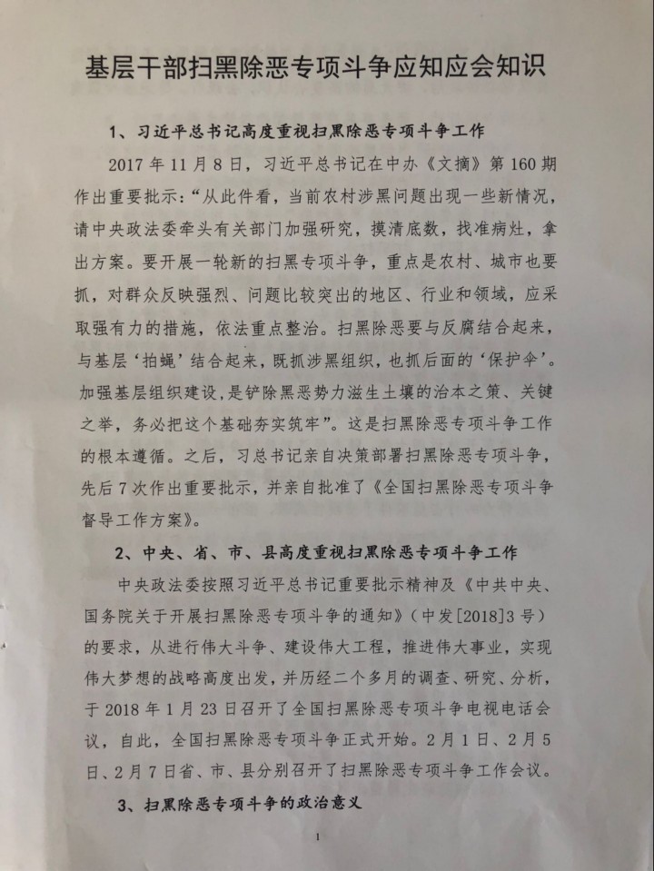 基層干部掃黑除惡專項(xiàng)斗爭(zhēng)應(yīng)知應(yīng)會(huì)知識(shí)