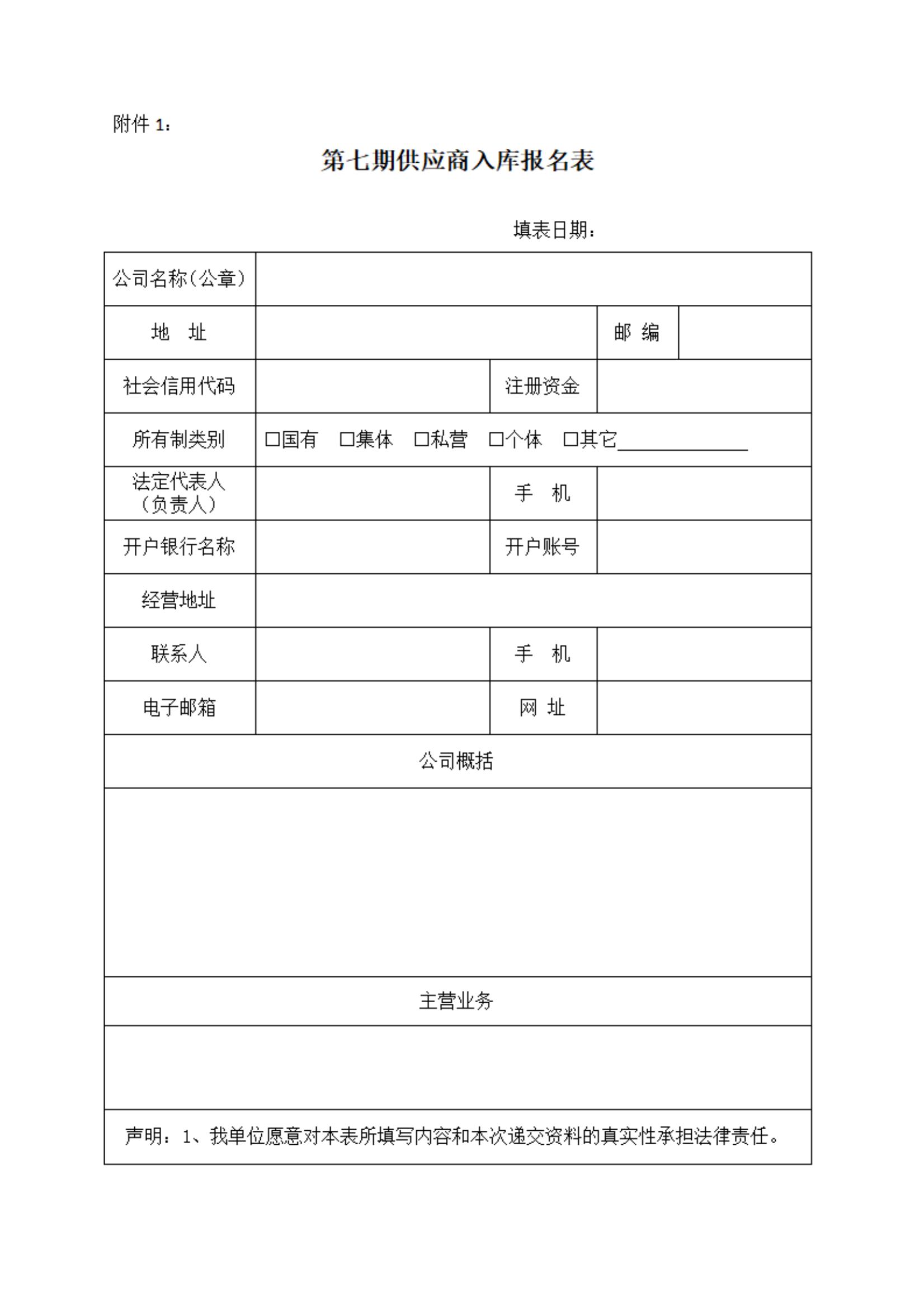 1、供應商入庫報名表(見附件);