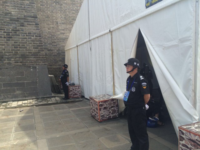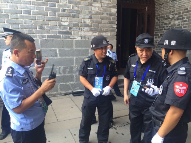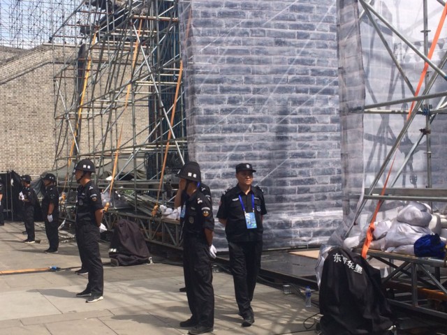 圖為公司保安隊(duì)員在閉幕式后臺(tái)區(qū)域進(jìn)行認(rèn)真的安全檢查