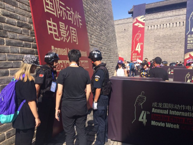 公司保安隊(duì)員在第四屆成龍國際動(dòng)作電影周系列活動(dòng)之一的