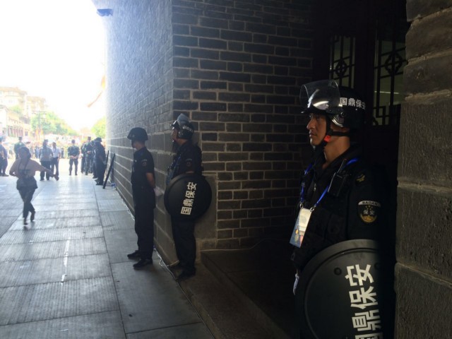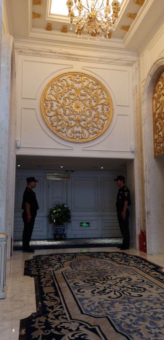 公司保安隊(duì)員在“文瀛湖會(huì)譚”主會(huì)場門前執(zhí)行安保任務(wù)