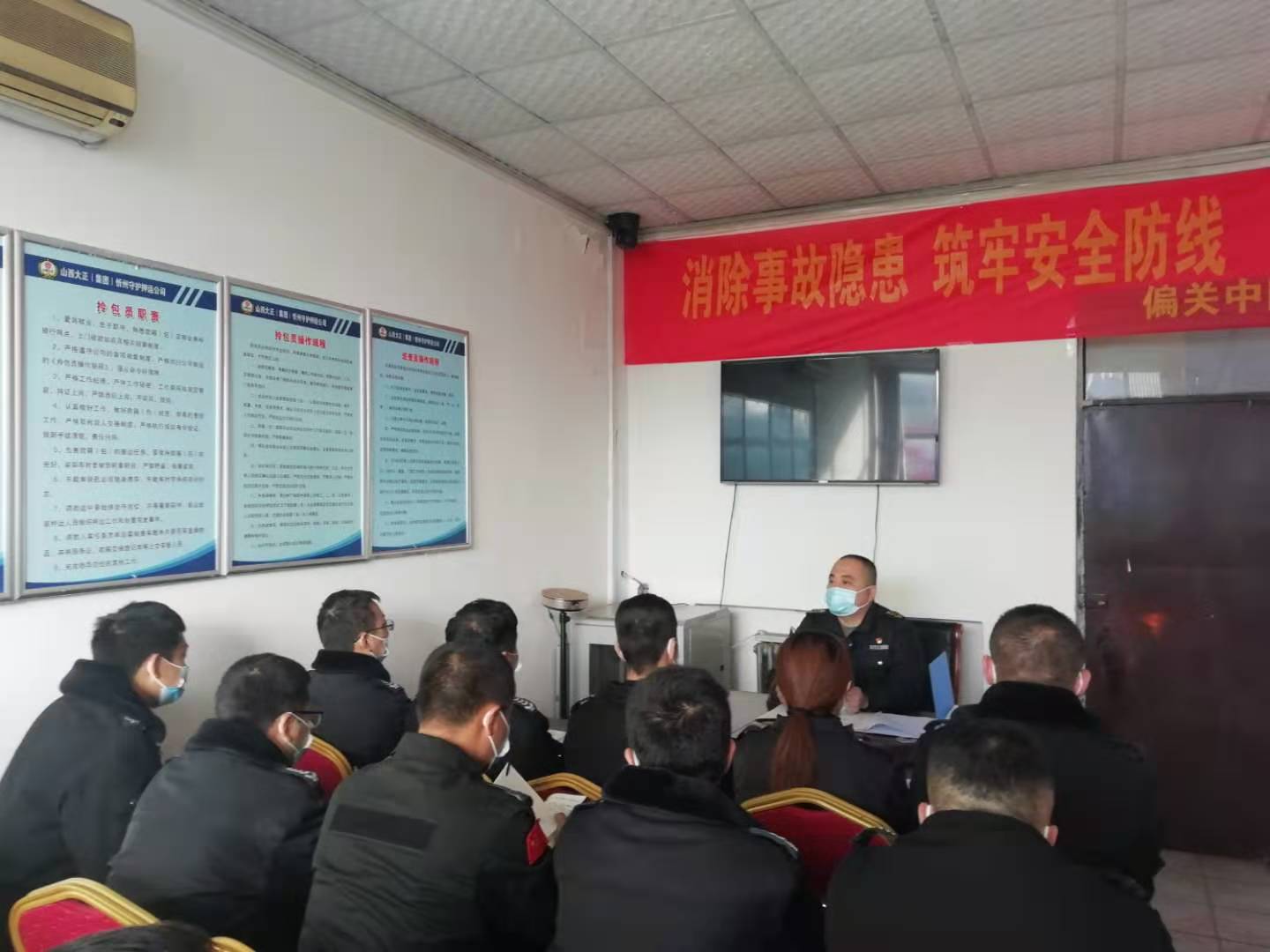 為了積極響應(yīng)集團公司“紀律作風(fēng)集中整頓活動”的安排部署,11月25日,守押五公司在所屬五寨中隊開展紀律作風(fēng)整頓暨基層中隊自查自糾活動專題會議。會議由守押五公司經(jīng)理王文章主持,副經(jīng)理王玉江及五寨中隊全體隊員參加了會議。