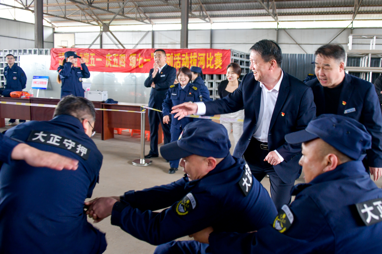 為深入學(xué)習(xí)貫徹黨的二十大精神,團(tuán)結(jié)引領(lǐng)全公司廣大員工奮進(jìn)新征程、建功新時(shí)代,進(jìn)一步活躍員工文化生活,增強(qiáng)廣大員工的凝集力、戰(zhàn)斗力和向心力。5月6日上午,大正集團(tuán)公司舉行2023年 “迎五一、慶五四、頌七一”拔河比賽。集團(tuán)公司黨委書記、董事長(zhǎng)、總經(jīng)理趙培宏,集團(tuán)公司黨委副書記、董事、副總經(jīng)理陳志平等公司領(lǐng)導(dǎo)班子成員觀摩比賽,并為現(xiàn)場(chǎng)參賽隊(duì)員鼓舞助威。