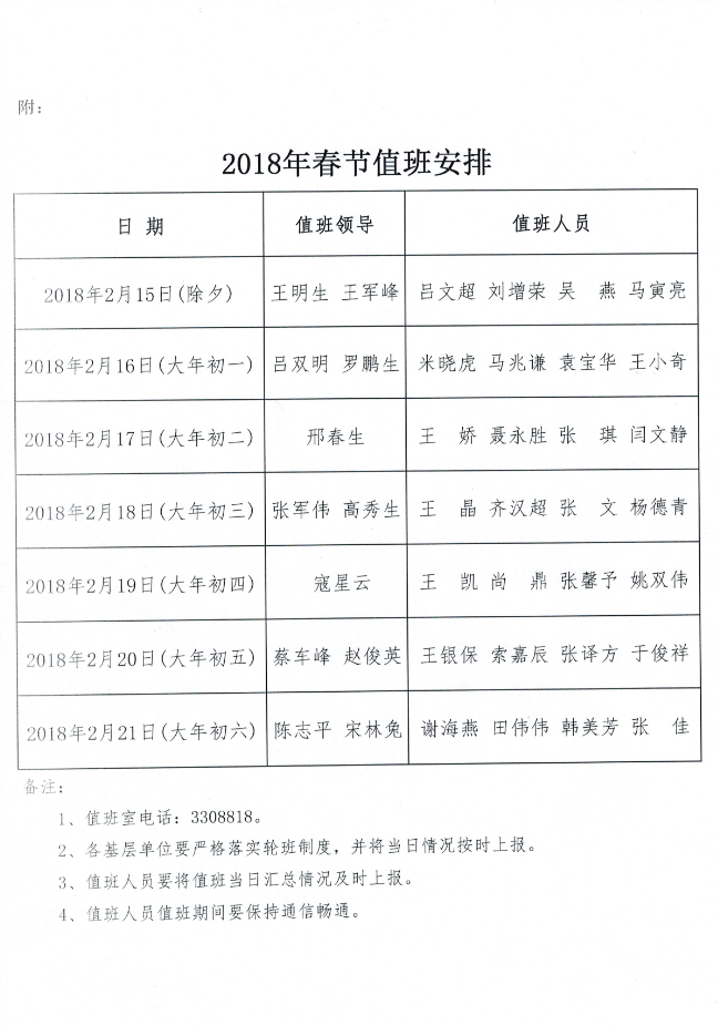 2018年春節(jié)值班安排