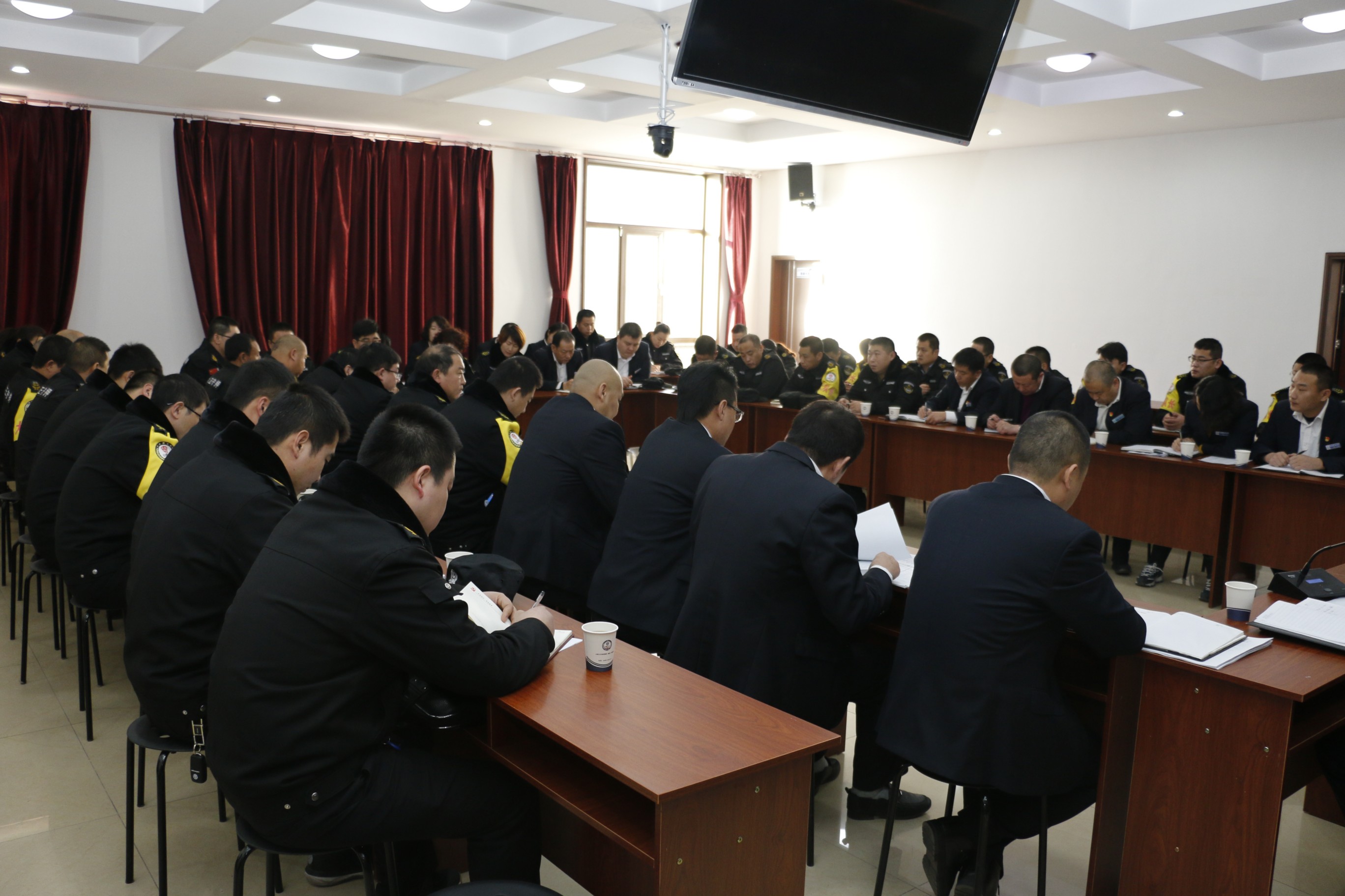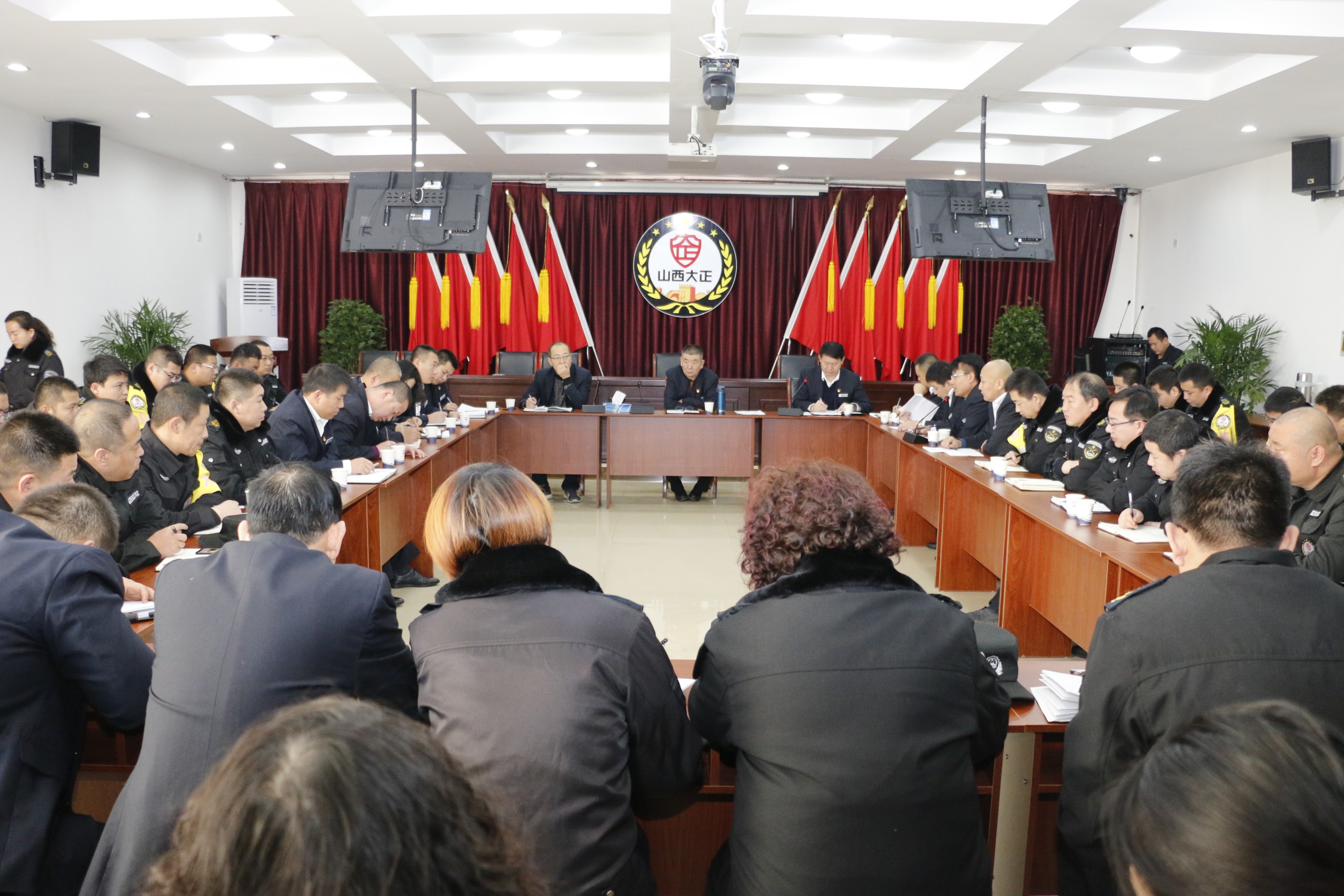1月20日,守押公司召開(kāi)2019年度第一季度工作例會(huì),守押公司各部門(mén)負(fù)責(zé)人、分公司、守押中隊(duì)負(fù)責(zé)人參加會(huì)議。張躍生、趙培宏、王明生等集團(tuán)公司領(lǐng)導(dǎo)出席會(huì)議。