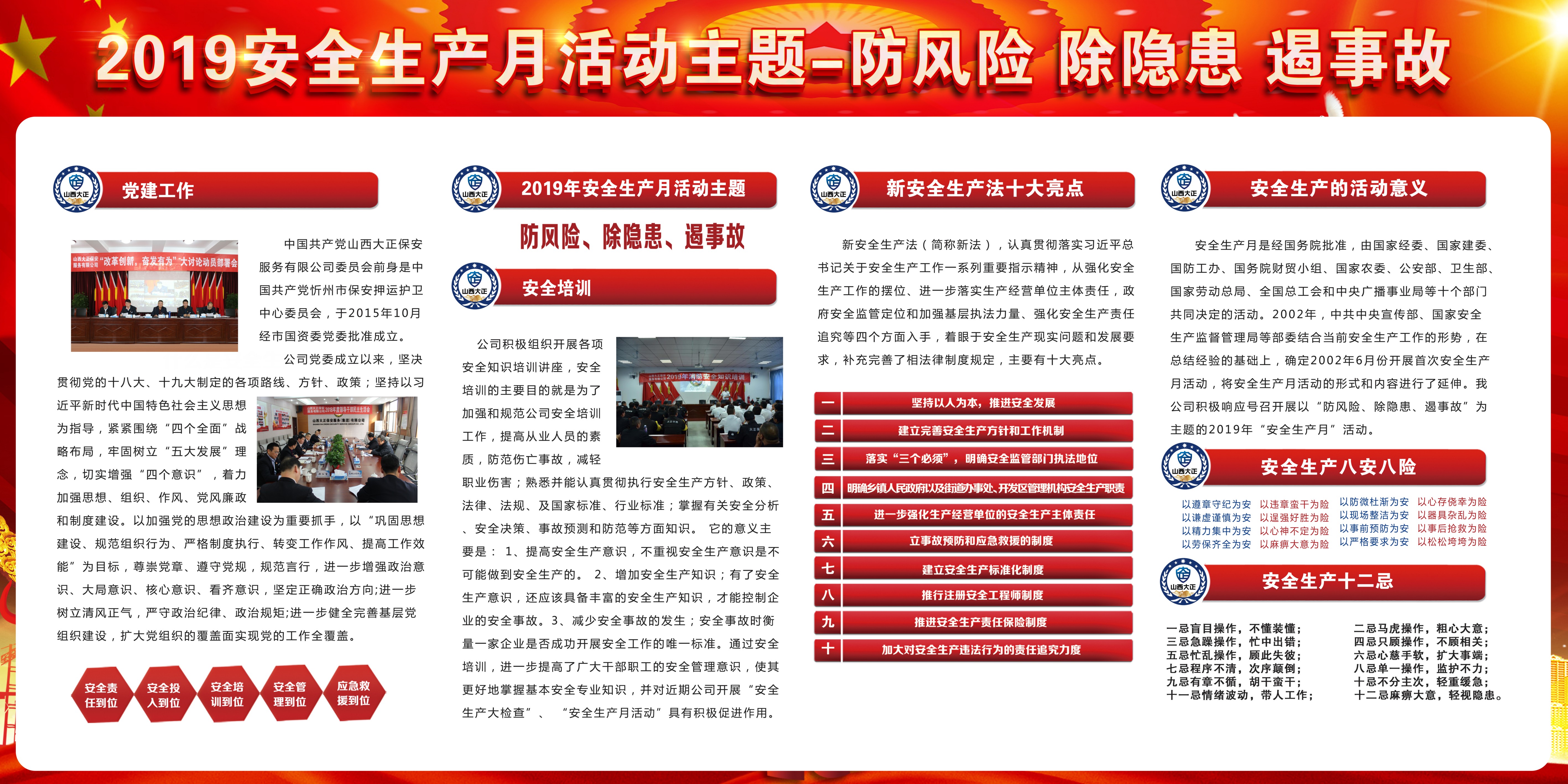通過開展本次活動,進一步增強了公司員工的安全責任意識,全面提升了安全工作水平,為實現(xiàn)全年安全生產(chǎn)無重特大事故的目標打下了堅實基礎,為各項業(yè)務順利進行營造了良好的安全環(huán)境。