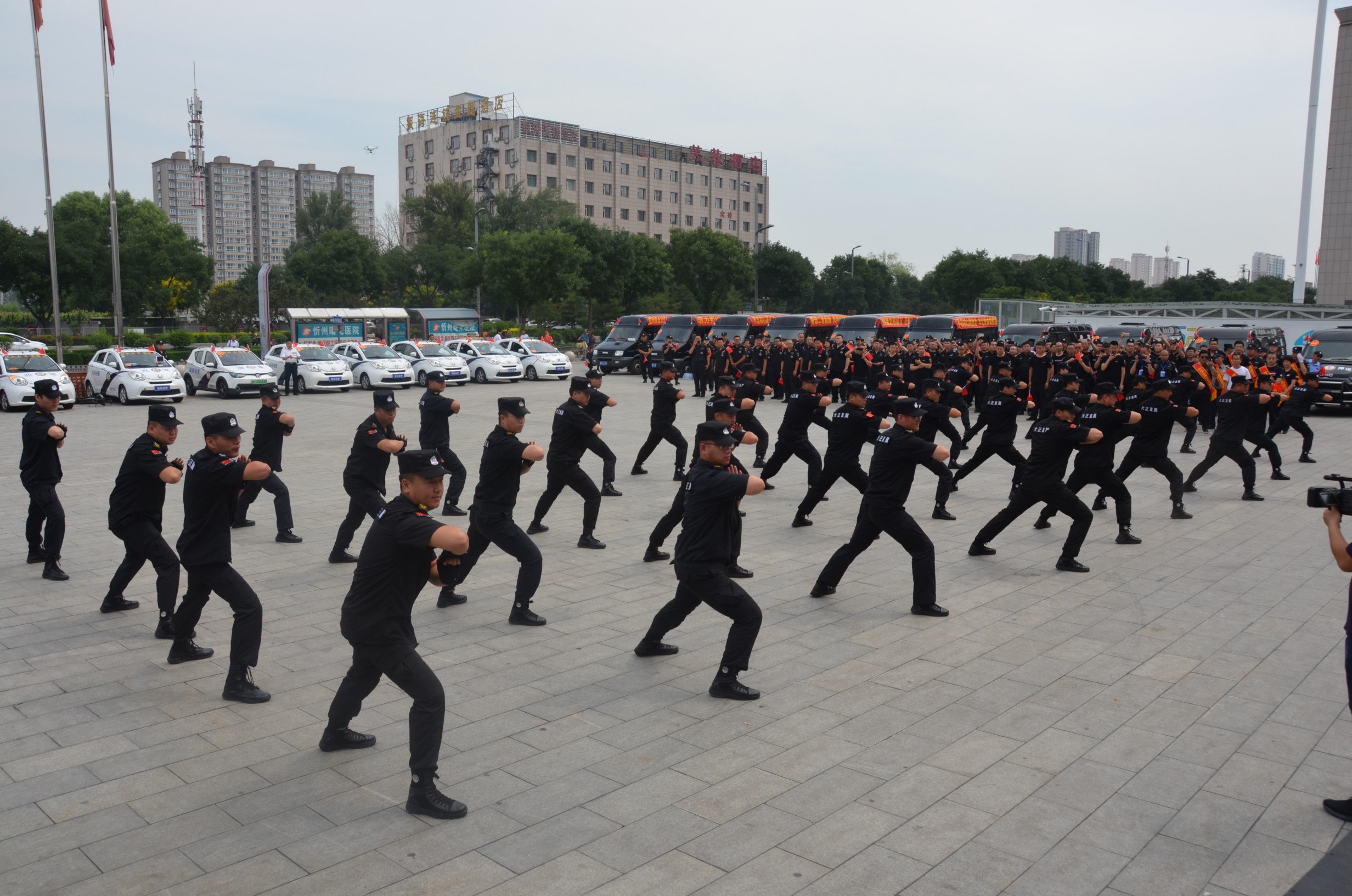 在忻州市保安行業(yè)“不忘初心跟黨走、牢記使命勇?lián)?dāng)”主題宣傳周活動(dòng)暨服務(wù)國(guó)慶安保工作誓師儀上,直屬公司安保隊(duì)員代表大正保安服務(wù)公司表演了擒敵拳,共十六式,式式剛勁有力、虎步生風(fēng),形如捉兔之鶻,神如捕鼠之貓,引來(lái)各界群眾一片賀彩。最后,進(jìn)行了車輛巡展,向市民發(fā)放了宣傳單以及宣傳口號(hào)。