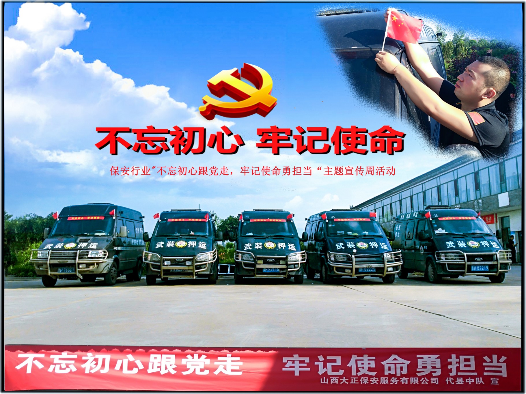 忻州市保安行業(yè)“不忘初心跟黨走、牢記使命勇?lián)?dāng)”主題宣傳周活動(dòng)暨服務(wù)國(guó)慶安保工作誓師儀式正式啟動(dòng)以來(lái),公司各基層單位按照忻州市公安局、忻州市保安協(xié)會(huì)以及公司的安排部署,立即行動(dòng),積極開(kāi)展“不忘初心跟黨走、牢記使命勇?lián)?dāng)”主題宣傳周活動(dòng),統(tǒng)一思想認(rèn)識(shí)、提高政治站位,進(jìn)一步增強(qiáng)使命感、責(zé)任感和緊迫感,創(chuàng)新工作思路、拓寬活動(dòng)形式、豐富活動(dòng)內(nèi)容、深化活動(dòng)內(nèi)涵,開(kāi)展安全防范宣傳、志愿服務(wù)和崗位練兵等工作,用實(shí)際行動(dòng)為“平安忻州”建設(shè)添磚加瓦,為“二青會(huì)”成功舉辦增光添彩,為新中國(guó)70周年大慶保駕護(hù)航。