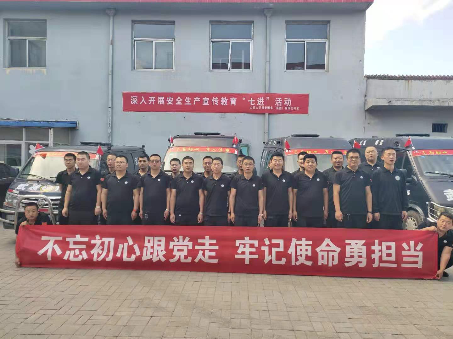 守押五公司公司各中隊(duì)積極策劃布置場(chǎng)地,隊(duì)員們積極主動(dòng)將印有“不忘初心跟黨走、牢記使命勇?lián)?dāng)”字樣的條幅懸掛在中隊(duì)最顯眼的地方,營(yíng)造濃厚氛圍。要求全體員工,在工作中認(rèn)真做到“人、車、槍、彈”的安全,為公司發(fā)展壯大的藍(lán)圖上勾勒上自己的一筆。
