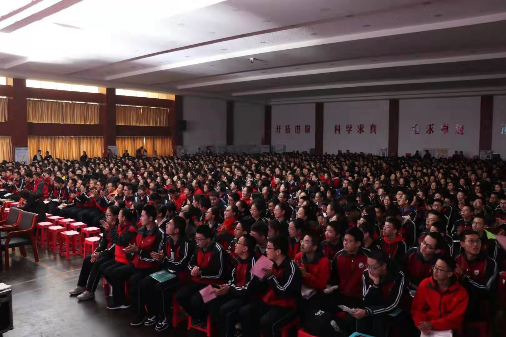 一中校長陳培器、黨委書記張潤福、公司黨委書記、董事長張躍生,董事長助理、辦公室主任宋林兔以及忻一中高二年級兩千余名師生一起觀看了演出。