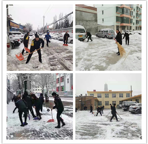 組織機關(guān)干部職工清掃辦公區(qū)域和周邊道路積雪,活動中,凜冽的寒風(fēng)阻擋不住大家高漲的熱情,齊心協(xié)力,配合默契將積雪清理干凈,使院內(nèi)及周邊道路恢復(fù)了暢通。