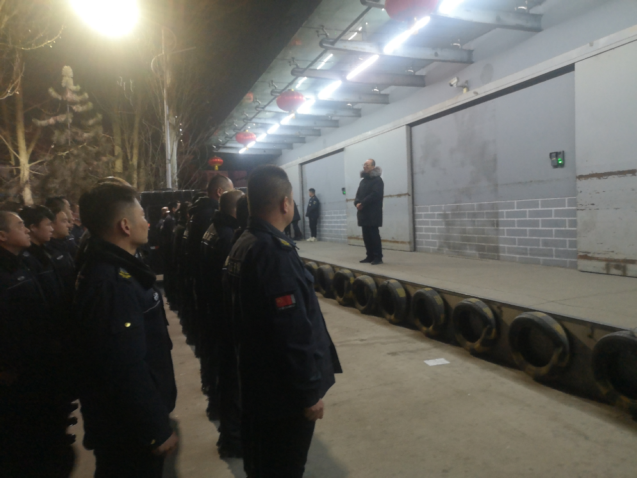 在中心庫(kù)駐地全體隊(duì)員集合完畢后,集團(tuán)公司黨委委員、副總經(jīng)理王明生作了簡(jiǎn)短的講話,他代表公司向奮戰(zhàn)在一線的守押隊(duì)員表示衷心感謝和新年的誠(chéng)摯問候,他指出,一年來,全體守押隊(duì)員盡職盡責(zé),擔(dān)當(dāng)作為,風(fēng)雨無阻,寒冷不懼,始終如一,辛勤付出,圓滿完成公司的各項(xiàng)工作任務(wù),為公司的安全穩(wěn)定發(fā)展作出了應(yīng)有的貢獻(xiàn),取得了良好效益和驕人業(yè)績(jī),得到了領(lǐng)導(dǎo)的贊揚(yáng)和大家的認(rèn)可。他強(qiáng)調(diào),在新的一年,希望全體守押?jiǎn)T工,不忘公司重托,不負(fù)領(lǐng)導(dǎo)期望,認(rèn)真履職盡責(zé),忠誠(chéng)擔(dān)當(dāng)作為,堅(jiān)守初心,敬業(yè)奉獻(xiàn),團(tuán)結(jié)奮進(jìn),繼續(xù)努力,為公司的高質(zhì)量發(fā)展再立新功!