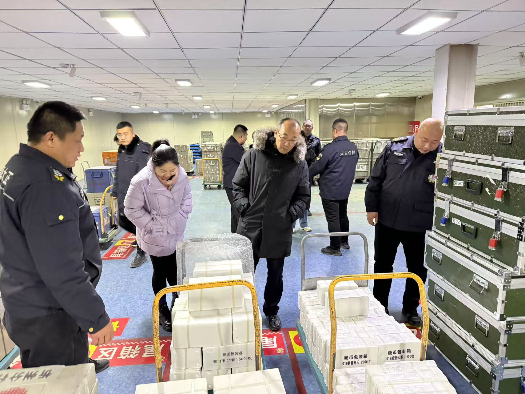在守押公司監(jiān)控中心,副經(jīng)理吳杰與隨行人員通過遠(yuǎn)程監(jiān)控畫面觀看金庫(kù)清點(diǎn)查驗(yàn)款箱(包)視頻影像,通過視頻對(duì)講聽取各大隊(duì)查庫(kù)負(fù)責(zé)人情況匯報(bào),完整準(zhǔn)確全面掌握查庫(kù)工作的進(jìn)展情況。對(duì)守押各大隊(duì)和基層中隊(duì)的年終查庫(kù)工作給予充分肯定,全體員工忠于職守,認(rèn)真履職,各負(fù)其責(zé),密切配合,體現(xiàn)了守押隊(duì)員的責(zé)任感和使命擔(dān)當(dāng),圓滿完成跨年查庫(kù)工作,為2024年守押工作圓滿畫上句號(hào),為2025年安全運(yùn)行奠定堅(jiān)實(shí)基礎(chǔ) 。