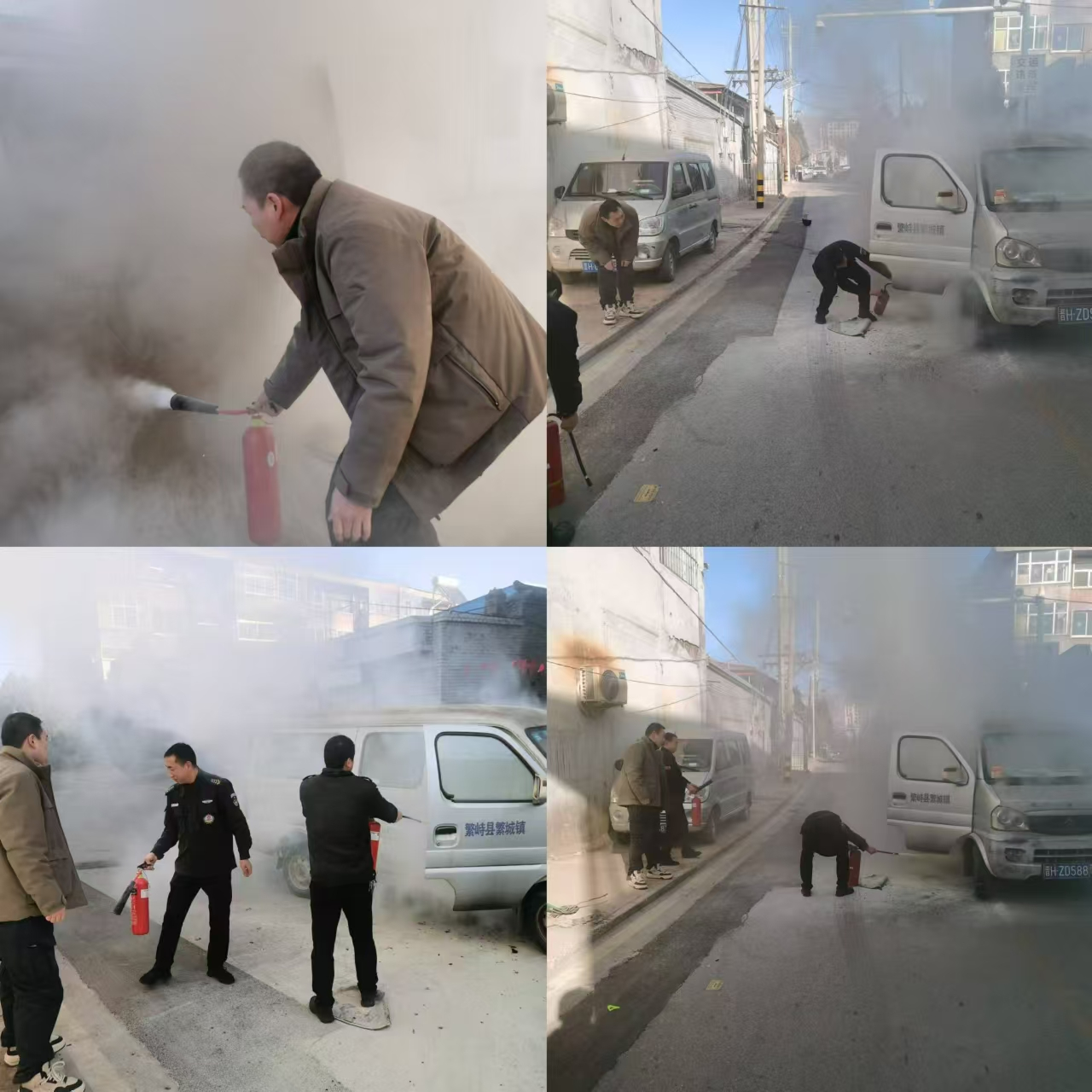 牛文亮迅速指揮團隊成員分工協(xié)作,一人負(fù)責(zé)疏散周圍群眾,確保人員安全;其余三人則利用銀行配備的消防器材,勇敢地沖向火場。在牛文亮的帶領(lǐng)下,保安們緊張有序地開展滅火行動,他們毫不畏懼濃煙和高溫,輪流奮力噴射滅火器,不顧危險,對準(zhǔn)火源進(jìn)行有效撲滅,成功遏制了火勢蔓延。